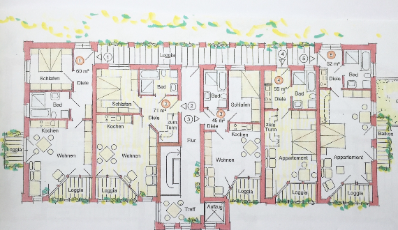 Wohnflächen 50 - 90 qm. - 1 bis 2 geschossig möglich.