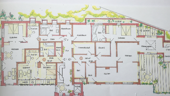 Noch mehr Fotos der Entwürfe und Grundrisse am Ende dieser Seite