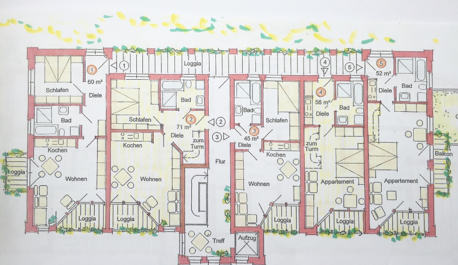 Zwei Wohnungen mit Turmzimmer (Rundumsicht).